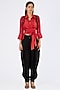 Featuring a red high-low shirt in silk base with hand embroidery. Accentuate with pants, stud earrings and heels for a brunch or an after-party look.