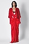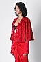 Featuring a red handcrafted cape in silk base with structured padded shoulders and sequins embroidery. Style it over a draped saree, diamond stud earrings, a clutch and high heels, perfect for a cocktail, sangeet or reception ceremony.