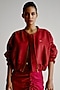 Featuring a red bomber jacket in suede base with a cropped silhouette, an exaggerated sleeves and gold-tone zipper detail. Style it with a ruffled skirt, matching with some hoops, heels and a clutch, perfect for fashion events, award show, or a cocktail soiree.