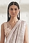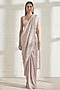 Featuring a silver pink pre-stitched saree in polyester base with metallic pleating details. It is paired with a matching blouse having sequins embroidery.