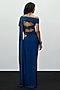 Featuring a teal pre-stitched saree in jersey base with ruching and side seam keyhole detail. Accentuate it with a blouse, dangler earrings and block heels for evening soirees or cocktails parties.