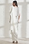 Featuring a white pre-pleated saree in dupion silk base. Accentuate with crop top, heels, and chandbali earrings for a pre-wedding ceremony or a boho festive look.