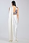 Featuring a white draped saree in satin base. Style it with stud earrings, a blouse, block heels and a clutch for cocktail parties or engagement ceremonies.