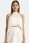 Featuring a white halter fringe top in satin base. Style it over a skirt and heels for an evening wear.
