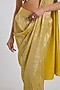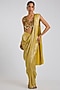 Featuring a yellow and gold draped saree in metallic pleated base having an attached underskirt. Accentuate it with statement jewellery and heels for a wedding, engagement or sangeet ceremony.