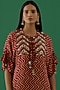 Featuring a maroon kaftan in modal satin base with embellishments, tie-up, and print.