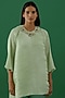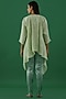 Featuring a mint pleated overlapped tunic in polyester base with an asymmetrical hemline including jewel and pearl embellishment. It is paired with matching pants.