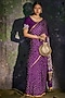 Featuring a purple bandhej saree in modal satin base with lagdi patta pallu, ghungroo and jhumki embellishments. It is paired with a blouse. Accentuate with statement jewellery and heels for festive occasions or wedding ceremony.
