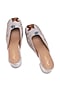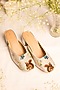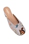 Beige Leatherette Floral Embellished Mule Heels
