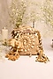 Featuring a brown potli bag in jute base with braided cord and shells detailing. It has a dupion lining. Carry it as a statement piece with traditional attire for weddings, events, or festive celebrations.