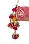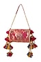 Featuring a fuchsia pink handbag in brocade base with multi-colored tassel detailing. It has a dupion lining and a gold chain handle. Carry it with a richly embroidered lehenga and classic heels for a stylish ensemble, ideal for wedding functions, festive celebrations or grand occasions.