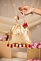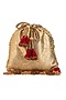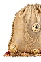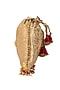 Featuring a gold potli in brocade and PU base with woven motifs and mirror embellishment, including tassels and gold coin detailing. It has a dupion lining. Carry it with a richly embroidered lehenga and classic heels for a stylish ensemble, ideal for wedding functions, festive celebrations or grand occasions.