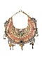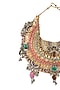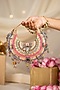 Featuring a gold handbag in brocade base with multi-colored thread embroidery and metallic detailing. It has a dupion lining. Carry it with a richly embroidered lehenga and classic heels for a stylish ensemble, ideal for wedding functions, festive celebrations or grand occasions.