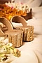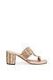 Featuring a pair of gold kolhapuri heels in leatherette base with embroidery. It has a leatherette underlining and 3-inch heels. Perfect wear for a wedding or festive occasion.