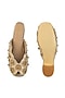 Gold Leatherette Floral Embroidered Heels