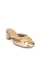 Gold Leatherette Ghungroo Embroidered Mule Heels