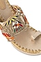 Featuring a pair of gold wedges in leatherette base with hand embroidery. It has an italian sole, 3-inch heels and double cushioning. Elevate your stride with timeless elegance and exceptional craftsmanship, perfect for festive occasions or wedding ceremony.