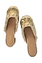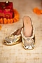 Featuring a pair of gold heels in leatherette base with pearls and beads hand embellishments. It has an italian sole, 2-inch heels and double cushioning. Elevate your stride with timeless elegance and exceptional craftsmanship, perfect for festive occasions or wedding ceremony.