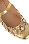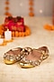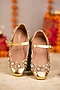 Featuring a pair of gold juttis in leatherette base with sequins, beads, zari and floral embroidery. It has a leather insole, vegetable tanned leather sole and double cushioning. Elevate your stride with timeless elegance and exceptional craftsmanship, perfect for festive occasions or wedding ceremony.