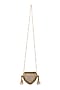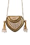 Featuring a gold handbag in metallic base with pearl detailing, crystal drop and tassels detailing. It has a chain and a crescent-shaped flap. Carry it with a richly embroidered lehenga and classic heels for a stylish ensemble, ideal for wedding functions, festive celebrations or grand occasions.