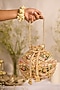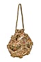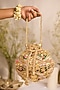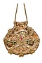 Featuring a green potli bag in suede base with gota-patti, metallic peacock and ghungroo embellishments. It has a dupion lining and a handle. Carry it as a statement piece with traditional attire for weddings, events, or festive celebrations.