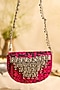 Magenta & Black Jacquard Kutchi Embroidered Sling Bag