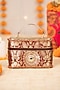 Featuring a maroon handbag in brocade and PU base with kundan embellishments. It has a dupion lining and a gold handle. Carry it with a richly embroidered lehenga and classic heels for a stylish ensemble, ideal for wedding functions, festive celebrations or grand occasions.
