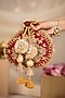 Featuring a maroon potli in cotton base with hand embroidery. It has a dupion lining and a handle. Carry it as a statement piece with traditional attire for weddings, events, or festive celebrations.