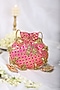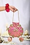 Featuring a pink potli in brocade base with gota embroidery. It has a dupion lining. Elevate your stride with timeless elegance and exceptional craftsmanship, perfect for festive occasions or wedding ceremonies.