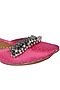 Featuring a pair of pink juttis in silk blend base with ghungroos detailing. It has leather underlining and 0.5 inch heels.