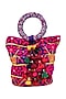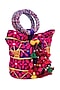 Featuring a purple handbag in jacquard base with floral and zardosi embroidery. It has a dupion lining and a bangle-style handle. Carry it as a statement piece with traditional attire for weddings, events, or festive celebrations.