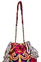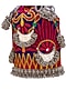 Featuring a purple potli bag in jacquard base with zardosi embroidery, metallic chandbali and ghungroo detailing. It has a dupion lining and a sleek chain handle. Carry it as a statement piece with traditional attire for weddings, events, or festive celebrations.