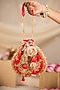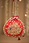 Featuring a red potli in cotton base with hand embroidery. It has a dupion lining and a handle. Carry it as a statement piece with traditional attire for weddings, events, or festive celebrations.