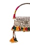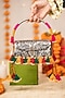 Featuring a silver handbag in metallic base with floral motif and beads embellishments. It has a curved metallic handle. Carry it with a richly embroidered lehenga and classic heels for a stylish ensemble, ideal for wedding functions, festive celebrations or grand occasions.