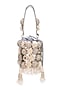 White Faux Leather Beaded Floral Cylindrical Potli Bag