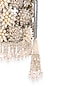 Featuring a white cylindrical potli bag in faux leather base with knotted tassels and beaded floral detail. It has a dupion lining. Carry it as a statement piece with traditional attire for weddings, events, or festive celebrations.