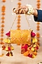 Featuring a yellow handbag in brocade base with zari motif embellishments. It has a dupion lining and a gold chain handle. Carry it with a richly embroidered lehenga and classic heels for a stylish ensemble, ideal for wedding functions, festive celebrations or grand occasions.