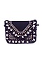 Featuring a black clutch bag in canvas base with beads, coins, and tassels embellishment. It has a cotton lining and a long sling chain.