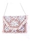Featuring a brown clutch bag in jute base with thread and beads floral embroidery. It has a cotton lining and a long sling chain.