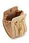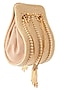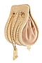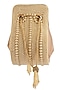 Featuring a gold clutch in suede base with beads and pearl embellishment, including tassel drawstring detailing. It has a silk lining. Carry it as a statement piece with traditional attire for weddings, events, or festive celebrations.