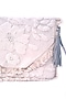 Featuring an ivory clutch bag in cotton base with pearls embellishment and thread embroidery. It has a cotton lining and a long sling chain.