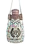 Featuring a pink champagne clutch studded with diamond rhinestones. It has a silk lining, a sleek chain handle and a bow. Its playful yet elegant design adds a sparkling statement to your ensemble, ideal for cocktail parties or evening dinners.