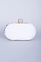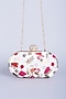 Featuring a white clutch in silk base with floral thread hand embroidery. It has a silk lining and a long sling chain.