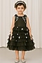 Black Polyester 3D Floral Embroidered Ruffled Dress For Girls