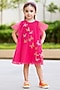 Featuring a fuchsia dress for girls in tulle base with embroidery. Accessorize it with matching hair accessories and sandals for a stylish ensemble, ideal for any festive occasion or birthday party.