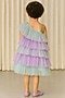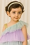 Featuring a multi-colored one-shoulder A-line dress for girls in shimmer tulle base with embellishments. Accessorize it with matching hair accessories and sandals for a stylish ensemble, ideal for any festive occasion or birthday party.