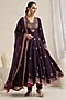 Aubergine Bemberg Silk Hand Embroidered Anarkali Set