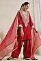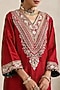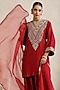 Featuring a deep red short straight kurta in bemberg silk base with dori and hand embroidery. It is paired with farshi salwar pants and an organza dupatta. Accentuate with statement jewellery and heels for diwali parties or festive ceremonies.