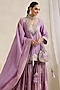 Featuring a purple short kurta in pure mal chanderi base with mirror, gota and dori work, including hand embroidery. It is paired with chanderi tissue gharara pants and a pure organza dupatta. Accentuate with polki jewellery and heels for ethnic diwali parties or engagement ceremonies.