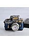 This stunning distressed blue camera clock decor accent adds a regal vintage dose to your home space or work desk. Crafted in resin. A great gifting idea for a photographer, a friend starting a new job, or a new colleague.